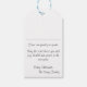 The quality and weight of the paper used was excellent. I love the feminine floral design. I gave received so many compliments on the unique cut of the tag. I also use these tags as a business card. This is my 3rd time ordering this design. I love it! I was very pleased with the printing. I was excited that I was able to print separate messages on both sides of the tag. Very clean look.
