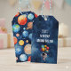 Get ready to launch into fun with this cosmic space-themed birthday party gift tag! Featuring a deep galaxy background filled with colorful planets, glowing stars, and a cheerful astronaut holding balloon-like planets, this design sets the perfect tone for a stellar celebration. Bold white and blue typography announces the birthday child's “trip around the sun,” making it ideal for a 10th birthday—or easily customizable for any age. Great for budding astronauts or space lovers, this invitation adds a whimsical, adventurous vibe to your party plans. Easily personalize with your event details and let the countdown to fun begin!