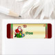 Santa with presents with decorative Graphic border, text and background...in red green and gold.