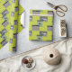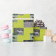 Alpaca photos. Images of three different alpacas are stacked diagonally and replicated across the paper with a medium green background. There is a white alpaca, a rust brown one, and one that is white and brown.