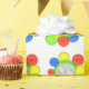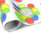 Bubble in center is personalized with your own image. Three dimensional bubbles in yellow, red, green, and blue in varying sizes surround the large central green bubble which holds your image.
