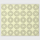 Pawprints in a circle are replicated into three concentric circles of gradually smaller prints. The Three circle pattern is replicated to resemble snowflakes - black prints on pale yellow background.