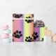 Graphic image of polydactyl (seven toes) paw prints on a rainbow colored background.