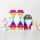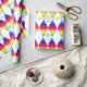 Diamonds in rainbow colored stripes are replicated. Rows of colored diamonds alternate with rows of white. Every other white diamond has text with greeting "Happy Birthday!" and name "Jonathan" (may be personalized).