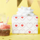 Solid red hearts are centered inside red wire outline hearts. Pattern shows rows of two enclosed hearts with a single empty heart between, alternating with one enclosed heart separated be two empty hearts.