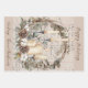 This design is a vintage themed piece of artwork in earthtone colors with a vine wreath that encompasses a display of vanilla candles and pinecones on top of antique paper with handwritten notes, a sure way to let someone know you are thinking of them or for yourself with Holiday decorating.