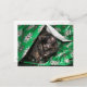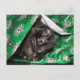 Tortoiseshell cat has wrapped her self in Christmas gift wrap postcard