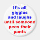 It's all giggles and laughs until someone pees their pants. Humorous design for almost any occasion, birthdays,parties,dances,football games or anyone, teens, adults, children, babies, and much more! If you want to make them laugh this design is for you.