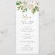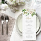 Custom printed wedding menu cards. Use the design tools to personalize the layout, background colors and text with your wedding menu details. This elegant design features a watercolor floral bouquet in green and white with faux gold foil accents.