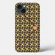 The original artwork by ZoeSPEAK on this Case-Mate iPhone 13 Case is a pattern made in the style of an envelope clutch bag. The bag is a gilded latticework cage, lined with a dark blue black silky fabric which has a subtle pattern of circular lines and highlights in blue, red and green. There are tiny red balls in the open spaces of the latticework. The flap of the envelope has a red border, and a large red ball button closure under gold latticework.