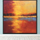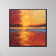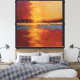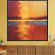 Layers of burnished gold, deep crimson, and softened amber unfold across the canvas, forming a horizon that feels both elemental and meditative. A narrow band of cooler blue cuts through the warmth, creating a moment of pause amid the surrounding intensity. The heavily textured surface captures light and shadow in subtle shifts, evoking the sensation of a landscape suspended between fire and stillness. This canvas print offers a bold yet balanced presence, inviting prolonged viewing and quiet reflection.