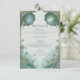 Transport your guests to a realm of gilded fantasy and vintage elegance with this breathtaking Art Nouveau details card. This design is a masterpiece of intricate, artistic detail, inspired by the flowing, organic lines of the Art Nouveau movement. A magnificent, shimmering frame in shades of deep teal and aqua is lavished with liquid gold accents, creating a stunning archway. The top of the frame features elegant, fan-like shapes reminiscent of ginkgo leaves, while the bottom blooms with a garden of whimsical, ethereal florals that seem to float on a soft watercolor wash. The opulent composition provides a magical backdrop for your essential wedding information, such as accommodations or your website. Its versatile and artistic design also makes it a stunning choice not just for wedding details, but also for a rehearsal dinner invitation, an RSVP card, or a menu for a formal gala. Set a tone of unique artistry and enchanting romance for your entire celebration.