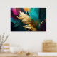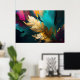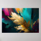 This sophisticated abstract artwork centers on a single gilded feather, rendered in luminous gold against a dramatic backdrop of deep teal, black, and rich jewel tones. The metallic texture of the feather catches the eye immediately, symbolizing lightness, freedom, and quiet strength, while expressive brushstrokes and layered color fields create depth and modern contrast.