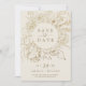 This gilded floral cream and gold save the date card is perfect for an elegant wedding. The modern boho design features a whimsical arrangement of faux gold foil hand drawn flowers, leaves and botanicals on a cream background.