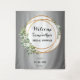 Wrap your bridal shower in opulence with this exquisite tapestry, adorned with shimmering silver threads entwined with lush green foliage and accents of gleaming gold rings.