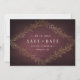 Faux Gilded gold hand drawn botanical foliage floral design in a diamond shape on dark burgundy background, modern and elegant, great save the date card for modern wedding, rustic wedding and fall or winter wedding.