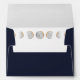 Chic solid navy blue color 5x7 envelope with return address on back flap. Envelope is lined with elegant gilded watercolor moon phases arrangement.