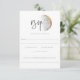 Elegant watercolor gilded moon, wedding RSVP cards with food allergy/diet restriction note. Back of card features solid coordinating navy blue color.