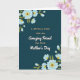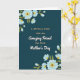 This greeting card features a deep teal background that feels like a quiet evening sky, setting a cozy, affectionate mood ❤️. Centered on the front is a short greeting, with a few key words in soft gold serif lettering and the rest in smooth white lettering layered neatly together. The text sits right in the middle, inviting the eye the way two close friends might lean in to share a private, kind note. In the upper-left corner, a cluster of stylized flowers begins the frame, then the arrangement continues diagonally toward the lower-right like a gentle path. Each bloom has light blue petals with subtle shading and a warm golden-yellow center that adds a tender, glowing touch 🌼. Thin olive-green stems and leaves curl around the corners, keeping the layout airy while still guiding attention back to the message. The gold accents in the lettering echo the flower centers, creating a soft, romantic harmony across the teal field. The upper-left and lower-right floral clusters mirror each other, with pale blue petals surrounding bright yellow centers and slender green leaves edging the corners.