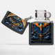 This extraordinary metal lighter features a striking, golden silhouette of a jet plane soaring between massive, intricate gilded wings. The central scene is set against a deep blue, textured background adorned with celestial elements and a compass rose motif. The design is framed by ornate bronze scrollwork and sculpted clouds, giving it a rich, heroic look. The lighter is personalized with the name "Alexander" positioned below the dominant, golden title "CAPTAIN". This spectacular, personalized gift is perfect for a pilot, commander, or anyone who embodies courageous leadership and uses their moral compass to navigate their journey.