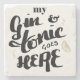 My gin and tonic goes here. Hand lettered saying written in calligraphy with gold colored design accents. The perfect gift for any G&T lover!