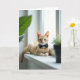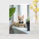 This design shows an elegant ginger tabby cat sitting on a sunlit white windowsill, wearing an emerald green bow tie that feels like a sweet date-night touch 💚. Soft daylight from the unseen window warms the cat’s golden-striped fur, and its amber eyes look straight out with a calm, inviting gaze, like it’s sharing a private moment with you. Green foliage frames the scene so it feels cozy and lived-in, as if someone nearby just stepped away and will be back in a second. On the left, a bright green plant sits close to the “camera” and falls into a gentle blur, while on the right a smaller fine-leafed plant rests in a dark pot for contrast. The greeting “Happy St. Patrick’s Day” appears near the top in deep green lettering, standing out against the light background without overpowering the portrait ☘️. The white window frame and sill keep the focus on the cat and greenery, and you can see the careful knot of the bow tie and the slight curve of the whiskers. A friendly line of smaller green text sits near the bottom edge, with the plants softly framing the cat on both sides.