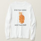 I love this shirt. I had written to the artist asking her if this picture was available on a shirt, and she wrote me back telling me where I could find the shirt. These shirts can be custom made to have a different saying. I loved this saying and went with it. The artist wrote me back later to tell me that she had seen my order go through. How's that for service? Pretty special. It's just as displayed. Perfect!