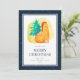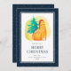 Ginger Cat Tree Snow Blue Merry Christmas Card