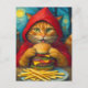AI generated art of a ginger cat in a red rain jacket eating a huge cheeseburger and a plate of fries