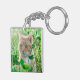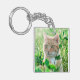 Ginger Cat with Green Eyes in Grass Keychain