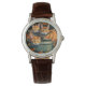 I like the illustrative watch with the lady on it. It is a great reminder that I am blessed and it has a very sturdy leather band. The colors are true and vibrant. Love the color of the Leather also. Very nice.