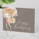 Whimsical ginger haired girl with pumpkin and customizable "Happy Thanksgiving" text on autumn brown background