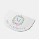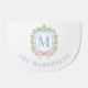 This doormat has a preppy grandmillennial design featuring a Christmas crest with a Chinoiserie ginger jar surrounded by berries. You can personalize with your initial and your name.