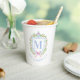 These paper cups have a preppy grandmillennial design featuring a Christmas crest with a Chinoiserie ginger jar surrounded by berries. You can personalize with your initial and name.
