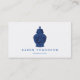 A decorative ginger jar filled with an ornamental blue pattern gives a worldly elegance to this modern business card design. Ginger jar illustration and card design © 1201AM CREATIVE