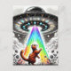 A cute ginger kitty welcomes a UFO in a wildflower meadow fantasy scifi art AI generated art