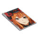 Ginger red haired anime girl green eyes black red notebook
