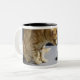 Ginger tabby cat sitting on table Two-Tone coffee mug