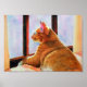 Ginger Tabby on Floral Tablecloth Poster