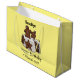So very happy with the quality of this bag! The thickness of the paper along with the glossy finish I just love it! Can’t wait to give our pup his gifts in this awesome custom gift bag! The printing came out amazing! The black crisp clear printing on the white bag looks amazing! Very pleased with this purchase!