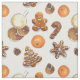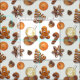 Watercolor gingerbread cookies with watercolor oranges, dry orange slices, walnuts and a hot cup of Christmas chocolate art.