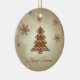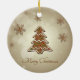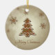 Delicious Christmas illustration: Decorated gingerbread Christmas tree and gingerbread stars on a brown bokeh background.