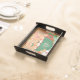 This is a well made, sturdy wooden tray with a flawless black finish and lovely map on the tray surface. It is both vintage & modern at the same time. Looks exactly like the photo; does not disappoint. So nice to find something of quality individually made and not the mass-produced 'shabby chic' merchandise seen in stores. I am so pleased to be able to give this to my college-age niece for her birthday. This can be used as a tray to hold jewelry or toiletries, or hung on the wall as art. The map surface is sealed (it is slightly shiny) so would be moisture resistant. It is well worth the asking price but I was able to apply a sale code as well. Very happy with my purchase. Map is crisp & clear and sealed with a water-resitant finish.