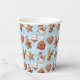 Celebrate in style with this cute gingerbread cookies paper cups. Perfect for decorating your Christmas or holiday party. Cheerful watercolor illustrations featuring gingerbread cookie figures (a Christmas tree, man with hat, snowman, star, heart, reindeer, house, and Christmas ball) on a blue and white background with snowflakes. Playful and charming, it's the perfect way to set the tone for a fun celebration and wish your loved ones a Merry Christmas.