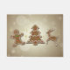 Elegant and delicious Christmas illustration: Decorated gingerbread Christmas tree, gingerbread man and gingerbread deer with golden stars on a brown bokeh background.