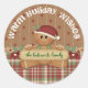 Cute gingerbread cookie man as cook with Warm Holiday Wishes text above. Rolling Pin has text ready for you to customize with your family name. Background has sweet little red hearts pattern with matching lower plaid in burgundy red, white and green for a delightful Country look. Cookie heart trim accent.