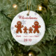A graphic vector of a gingerbread family of four on a Christmas ornament. The ornament has text templates on the front for your names and a optional template on the back.