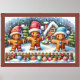 Celebrate the sweetness of the season with this charming winter scene featuring a cheerful gingerbread family dressed in festive hats, standing joyfully in the snow before a cozy cottage. Colorful buttons, candy-like decorations, and whimsical icing details bring each character to life, while gently falling snow and twinkling pine trees create a magical forest backdrop. The warm lights of the gingerbread house and a rustic wooden fence lined with vibrant ornaments enhance the nostalgic charm, evoking memories of classic holiday traditions. Ideal for holiday lovers who adore playful, storybook-style designs, this heartwarming composition blends folk whimsy and festive flair, perfect for seasonal displays and winter decor. AI generated artwork.