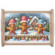 Gingerbread Family Snowy Christmas Scene Serving Tray