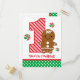 Cute Christmas 1st birthday design with a candy cane striped number 1, adorable little gingerbread girl and red and green striped peppermint candies. PinkInkArt original!.